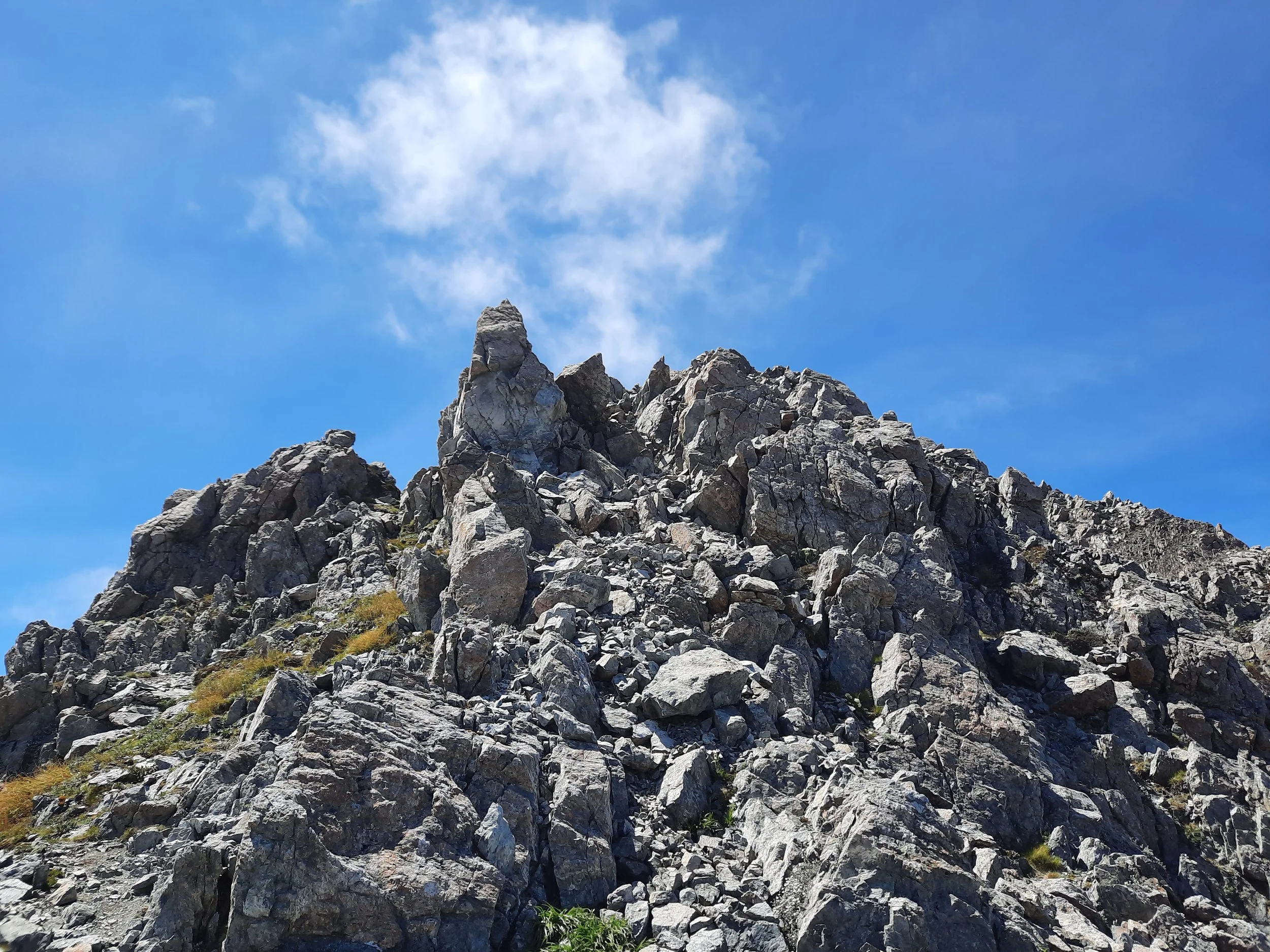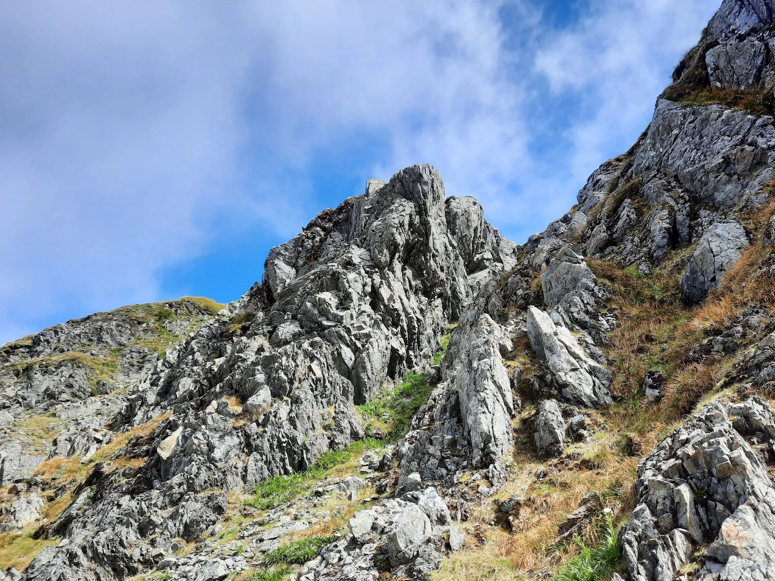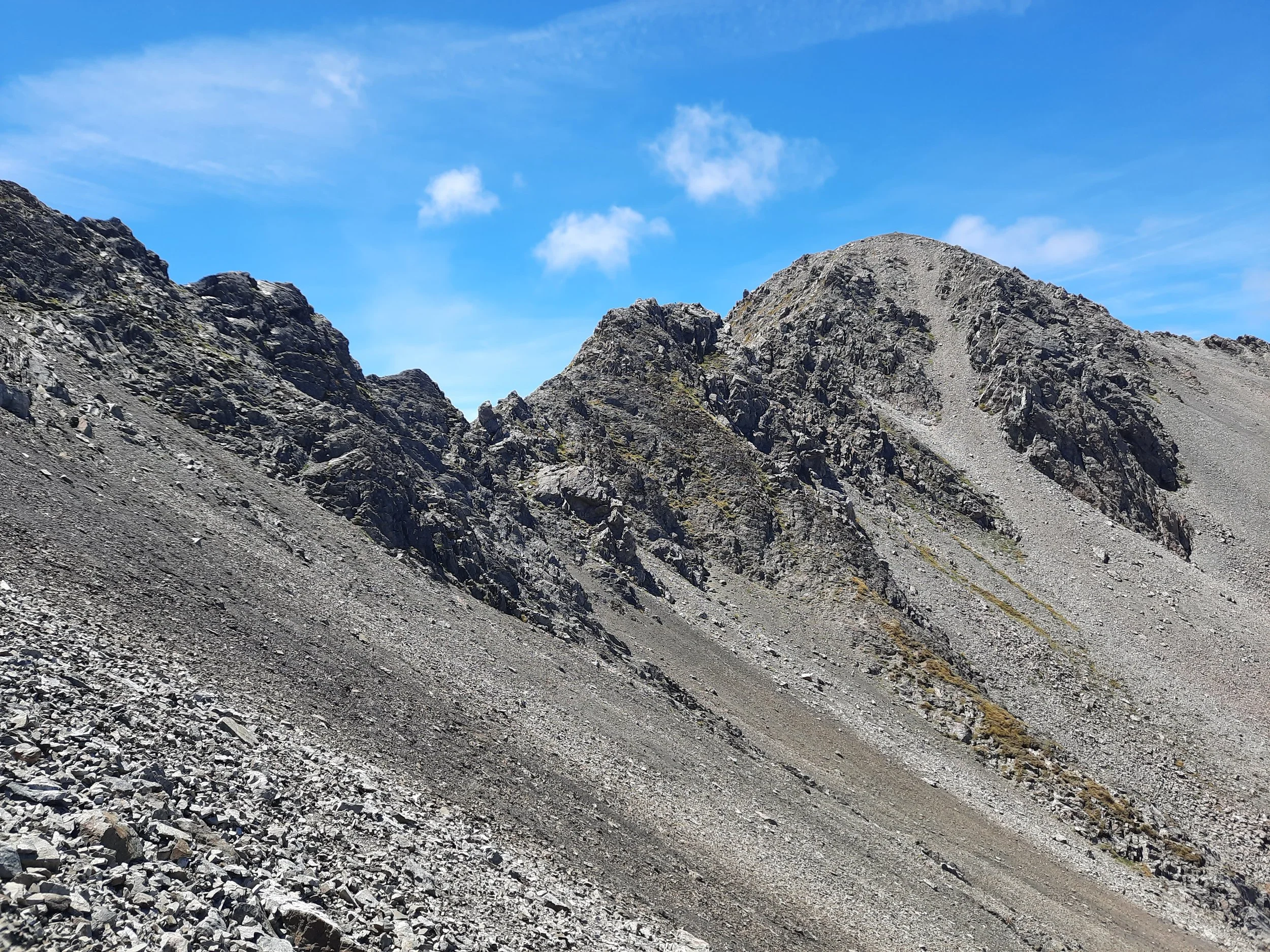 Above treeline, the track remains steep, and the problem shifts from tripping while stepping to finding the right place to step. There is a long, rocky ridge leading up to the peak of Mt Bealey. I descended a little bit, down from the ridge to the tussock and gravel to the left of it, whenever I didn’t see a good walking route on the ridge itself. It was slow but enjoyable.