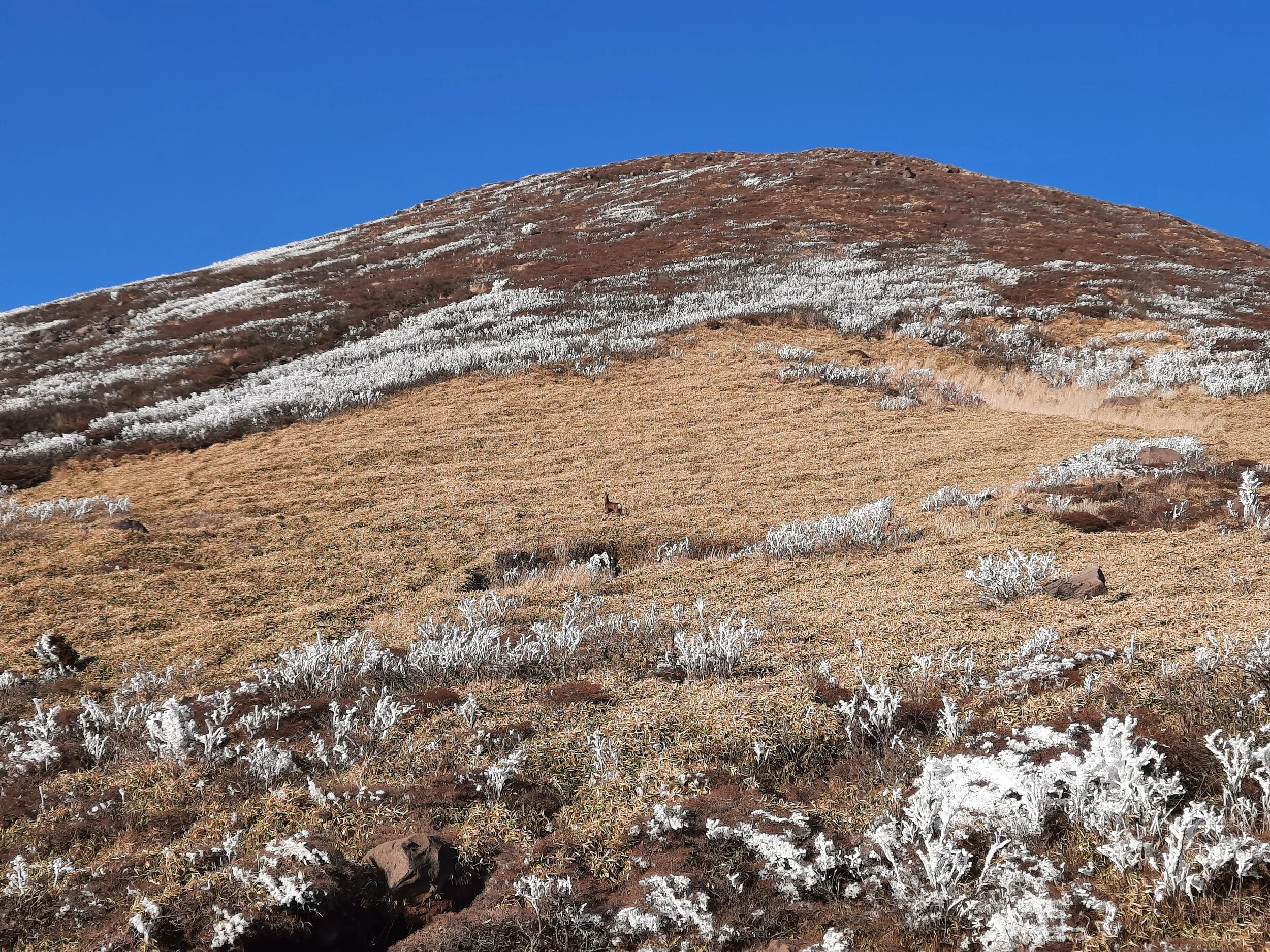 I took Kyūshū Odan Bus from Chojabaru Visitor Center to Makinoto Pass, ascended to the summits of Mt Kujū (1787m) and Naka-dake (1791m, the highest peak). After that, I crossed Sugamori Pass and descended to my accommodation near the visitor center.