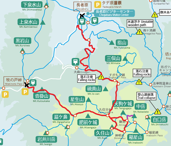 Pages about hikes from Omagari trailhead (on the road between Chojabaru and Makinoto Pass)