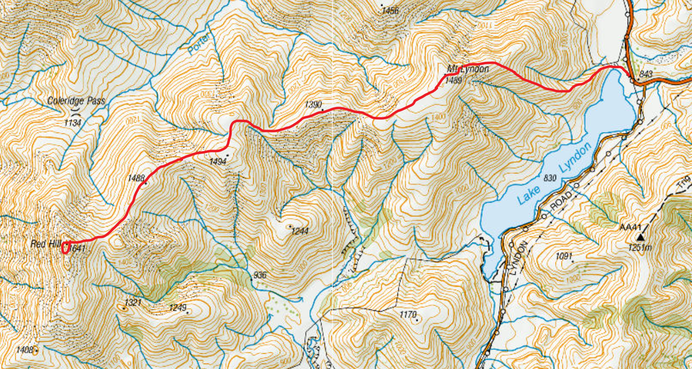 Mt Lyndon (1489m) and Red Hill (1641m) are the two ends of a long ridge attached to the southern end of the Craigieburn Range in the Castle Hill area of Canterbury, South Island. Lake Lyndon separates them from the Korowai-Torlesse Tussocklands Park, including Trig M, which I have also hiked.