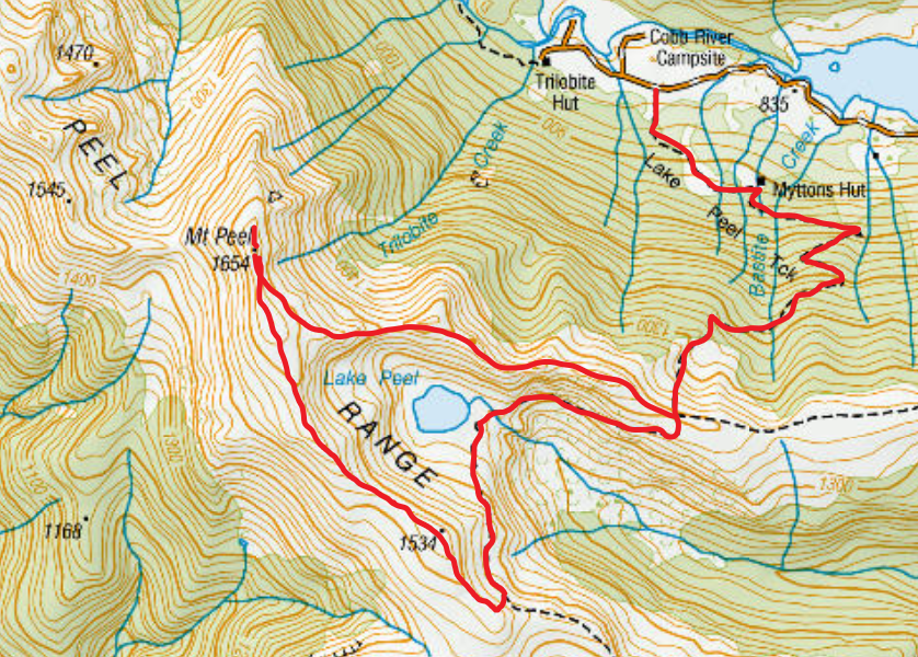 Mt Peel (1654m) is a long hike above Cobb Reservoir in the Tasman District of South Island. As a day-trip, it is accessible from Lake Peel parking lot, which is around 1 hour 25 minutes from Tākaka. Lake Peel itself is an official DOC destination reached by a poled route, but the summit is not. I circled Lake Peel by walking around the rim of the corrie (cirque).